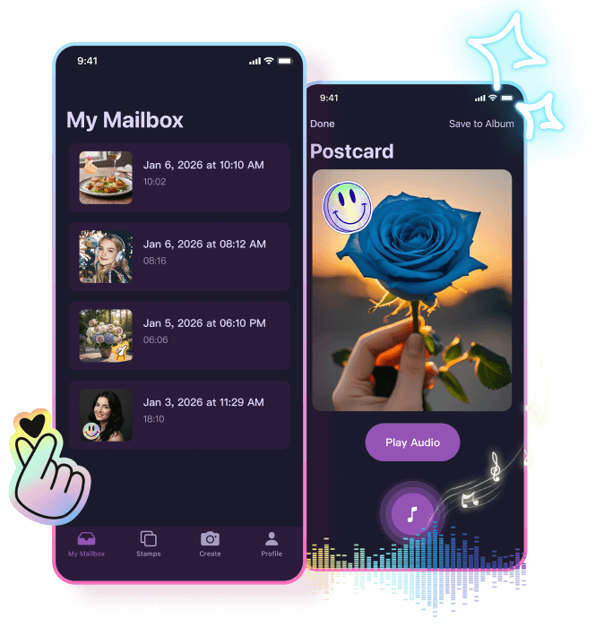 A cinematic lab to create, stamp, and archive audio postcards.